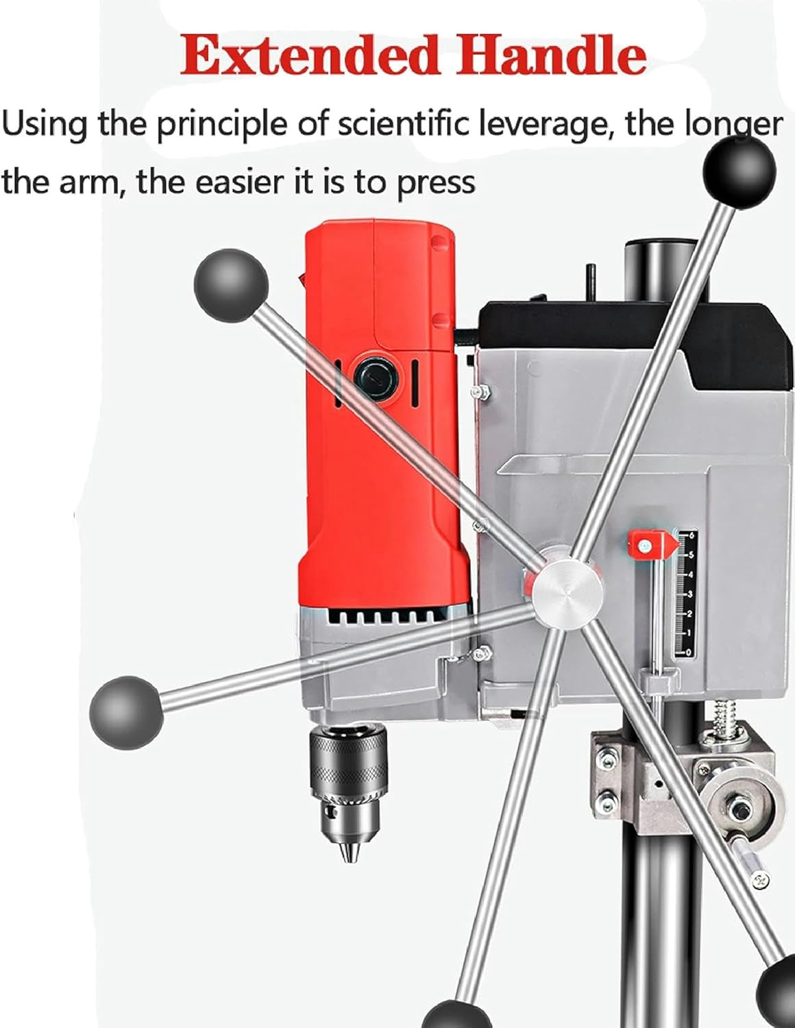 This benchtop drill press is a great tool for home DIY projects. It’s a compact drill machine that comes with a pillar stand. You can easily change its speed, as it has 6 adjustable settings, making it simple to use with your workbench.