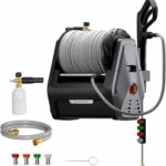 • ✅ Wall Mounted & Large Cleaning Range: Wall-mounted design with 180° customizable bracket allows the pressure washer to continue to stay clean after cleaning. Come with 6 ft power cable with built-in GFCI and 65 ft retractable pressure hose, which can reach anywhere, such as courtyards, streets, balconies, garages, etc