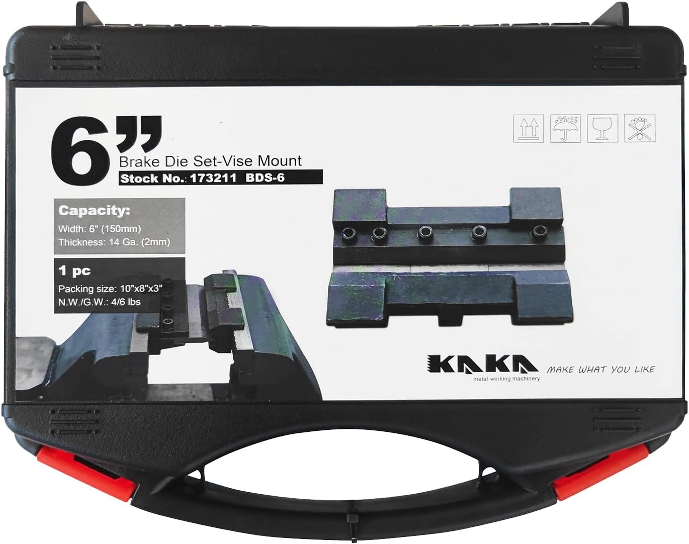 The KAKA Industrial BDS-6 is a 6-inch metal brake that attaches to a vise. It’s built tough for industrial use and can bend sheet metal. This tool is heavy-duty, durable, and compact, making it easy to set up and use.