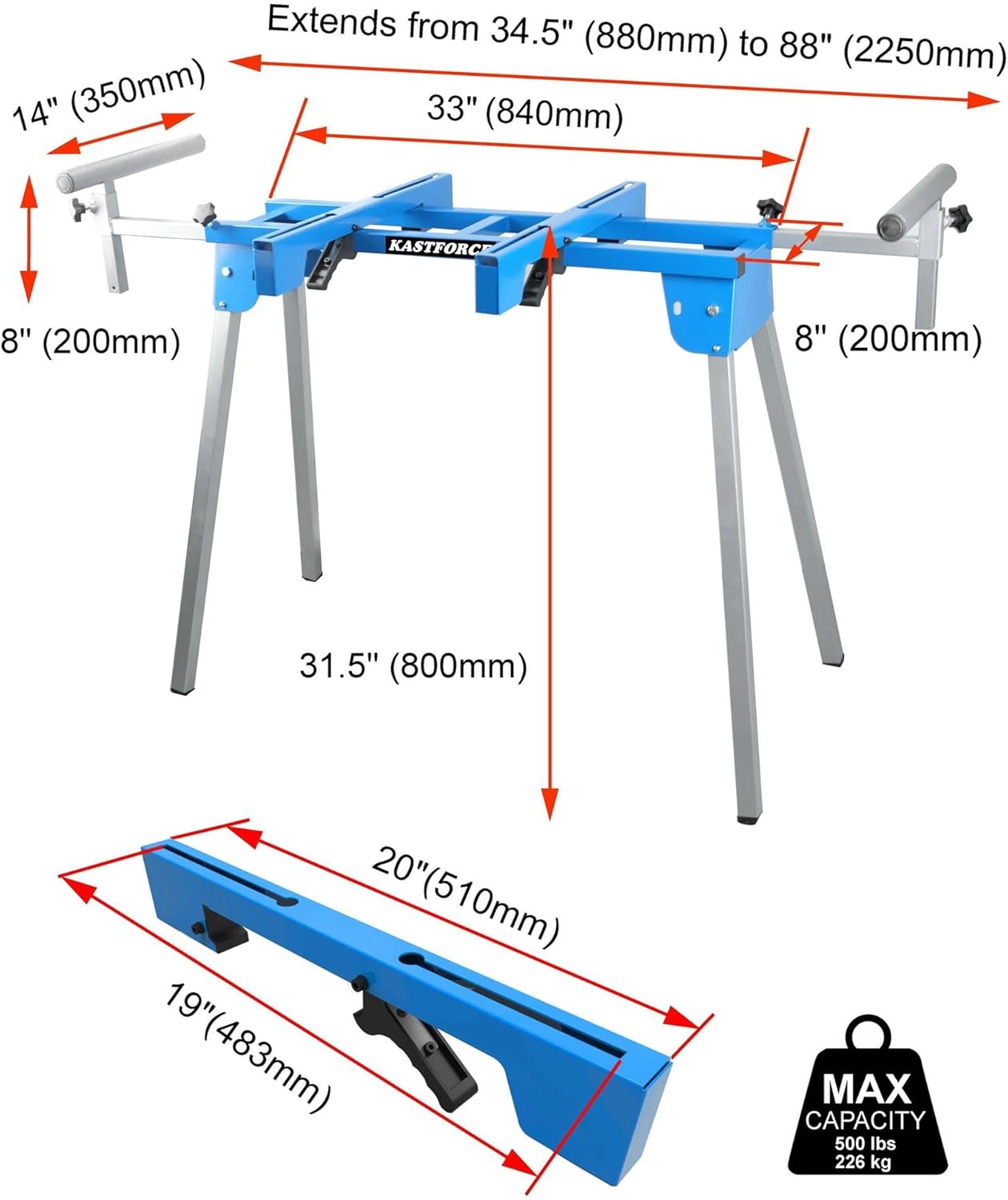 The KASTFORCE KF3001 Miter Saw Stand is a strong and tough stand for your miter saw. It can hold up to 500 pounds, which is about the same as a few really big people. This stand works with many different miter saws, from small 8-inch ones to large 12-inch slide compound saws. It’s built to last and makes it easy to set up and use your saw.