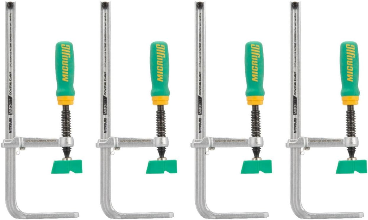 This four-pack of green MICROJIG Matchfit DVC-850AP 2-In-1 clamps is like having an extra set of hands in your workshop. Imagine a chameleon; these clamps adapt. They work in two ways. First, they fit into dovetail tracks. This lets you hold wood securely. Also, they work as in-line clamps. This means they press against workpieces. They are perfect for many tasks. For instance, you can hold down panels. You can also secure jigs. Moreover, the green color is easy to spot. These clamps truly simplify your woodworking. They are simple to use. Therefore, even beginners will appreciate them.