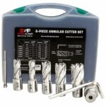 This OSCARBIDE set has 13 tough drill bits made with carbide tips. These bits are for making round holes in metal using a special drill called a magnetic drill press. They have a 3/4 inch Weldon shank to fit the drill and can cut holes that are 1/2 inch to 1-1/8 inch wide and up to 1-3/8 inch deep. The set also comes with pins that help guide the drill. These bits are strong and made to last.