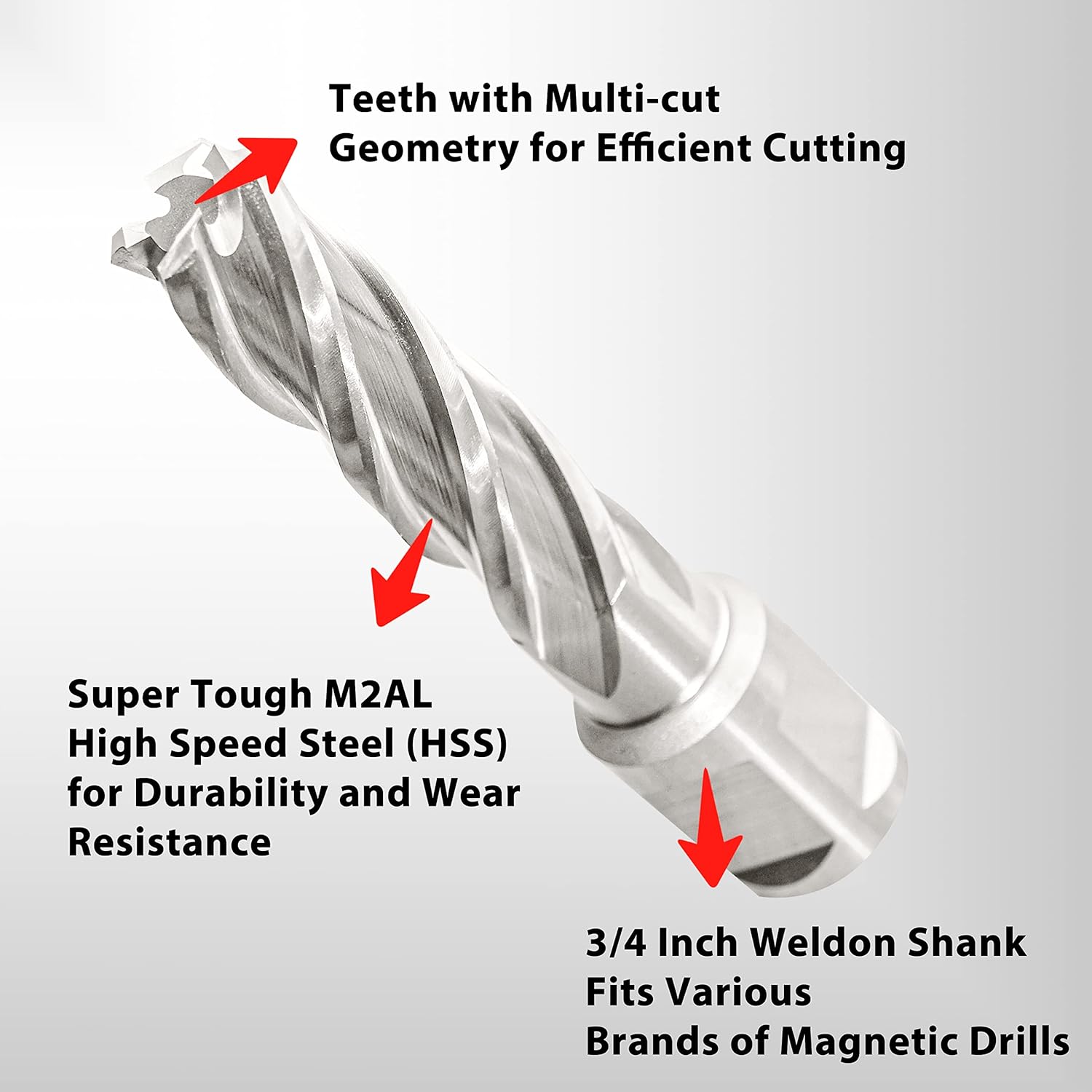 • ✅ Cnc-machined high precision annular drill bit set with 3/4 inch weldon shank (with 2 flats) for secure clamping and edge finish designed for smooth, reamed, burr-free edges of drilled holes. Use a firm steady pressure throughout the cut for better results