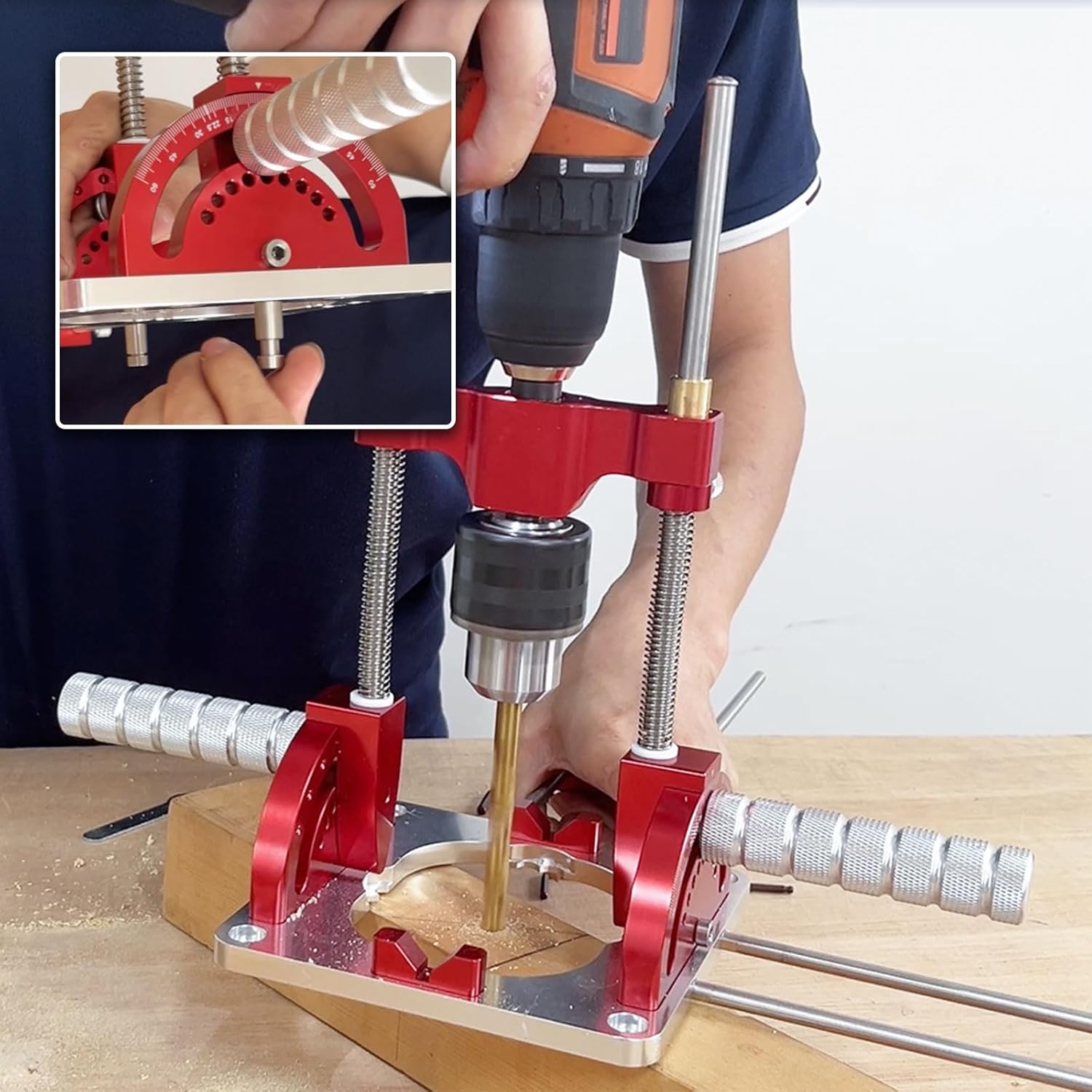 The SYWAN Portable Drill Press is a helpful tool for drilling accurate holes. It works with most power drills, holding them steady so you can drill straight or at an angle from 0 to 60 degrees. This tool also has a special base that keeps your drill centered, which is great for working on woodworking projects and furniture. It even comes with a drill chuck and key, making it simple to use.