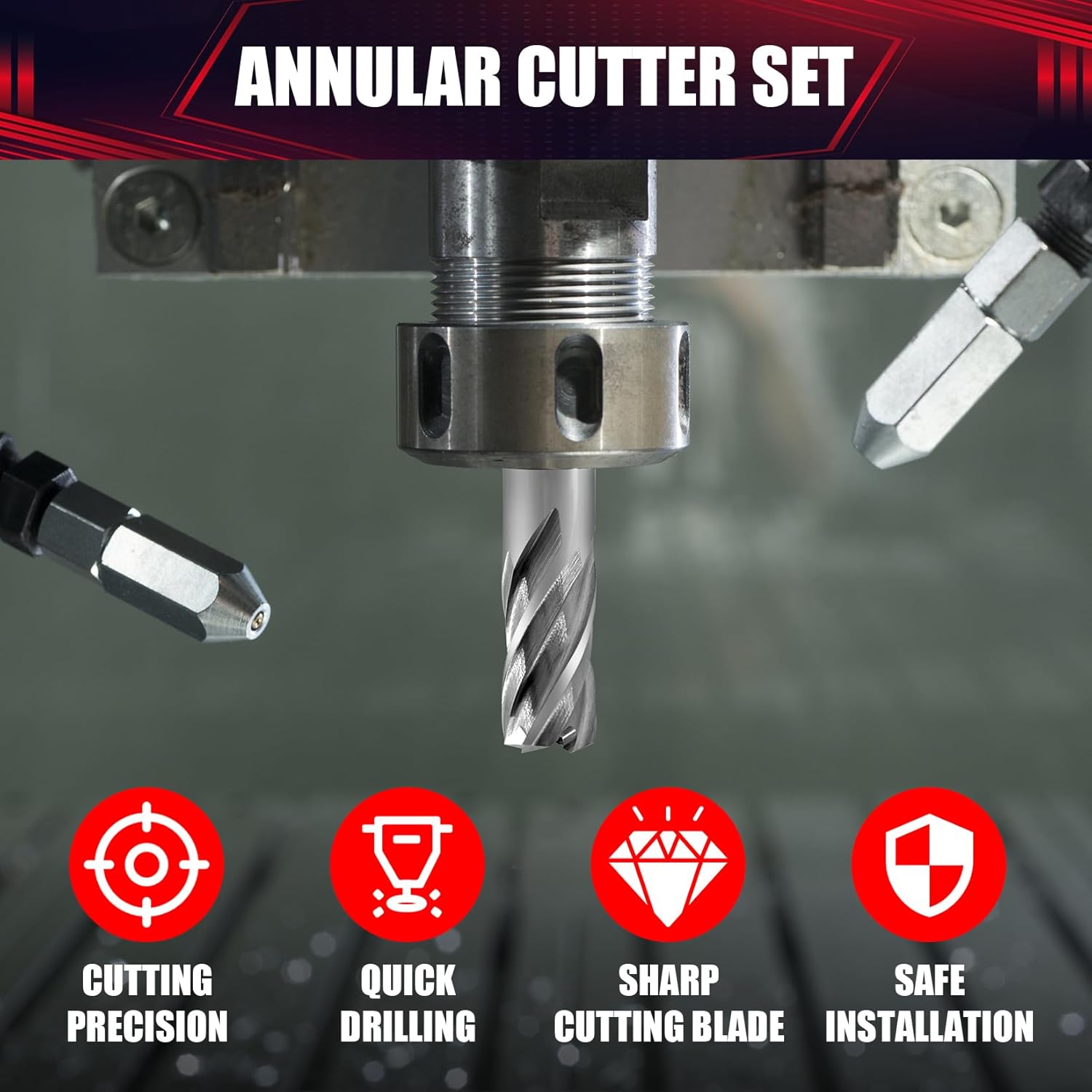 • ✅ CNC-machined high precision annular drill bit set with 3/4 inch Weldon shank (with 2 flats) for secure clamping and edge finish designed for smooth, reamed, burr-free edges of drilled holes. Use a firm steady pressure throughout the cut for best results
