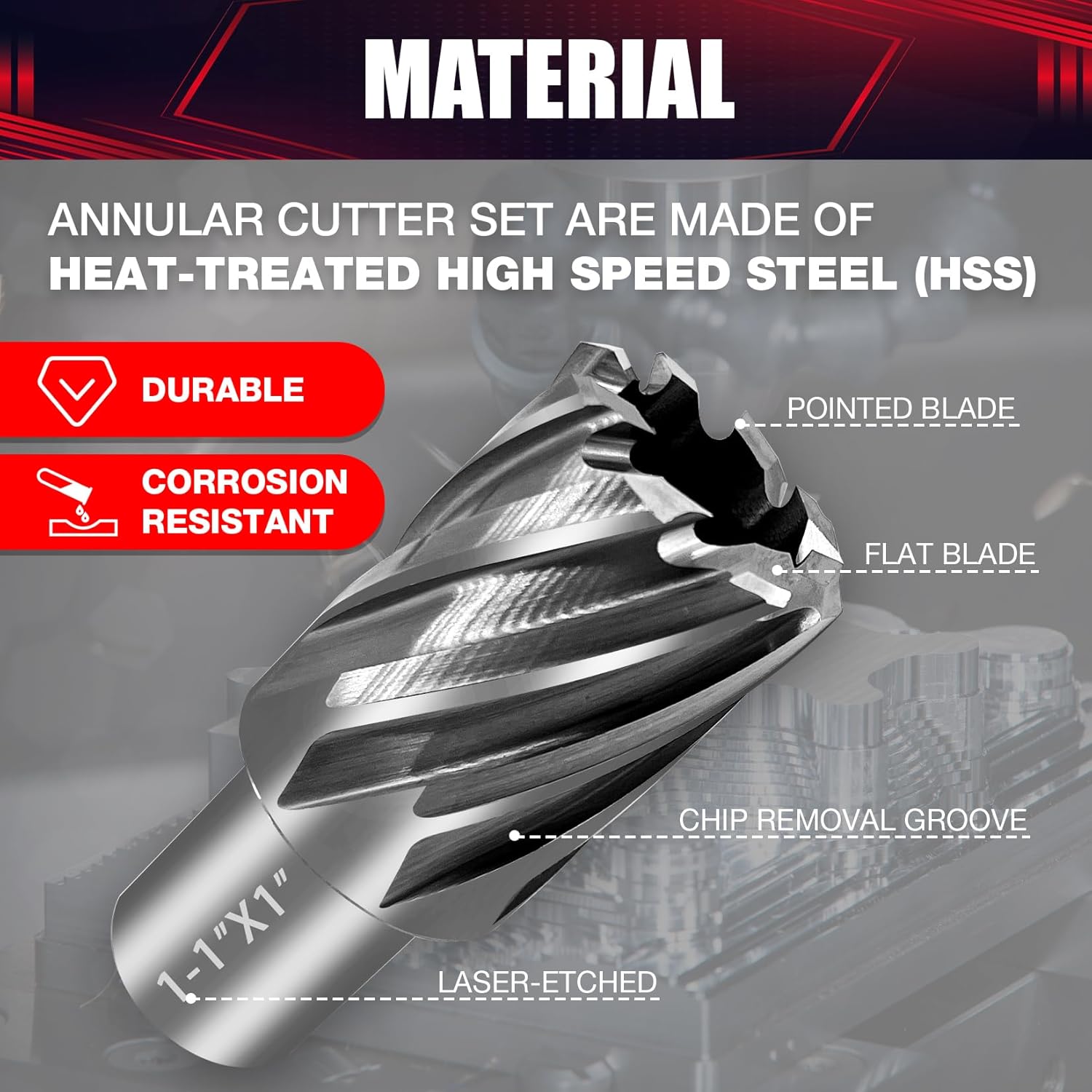 • ✅ Annular cutters made with super tough M2AL high speed steel (HSS) for durability, wear resistance, high efficiency and superior service life